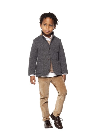 En chicos tenemos el estilo clásico de college, que siempre está de moda, junto con los jerseys de lana con grecas y como novedad el color mostaza, para chicos, que Nanos apuesta en varios modelos.