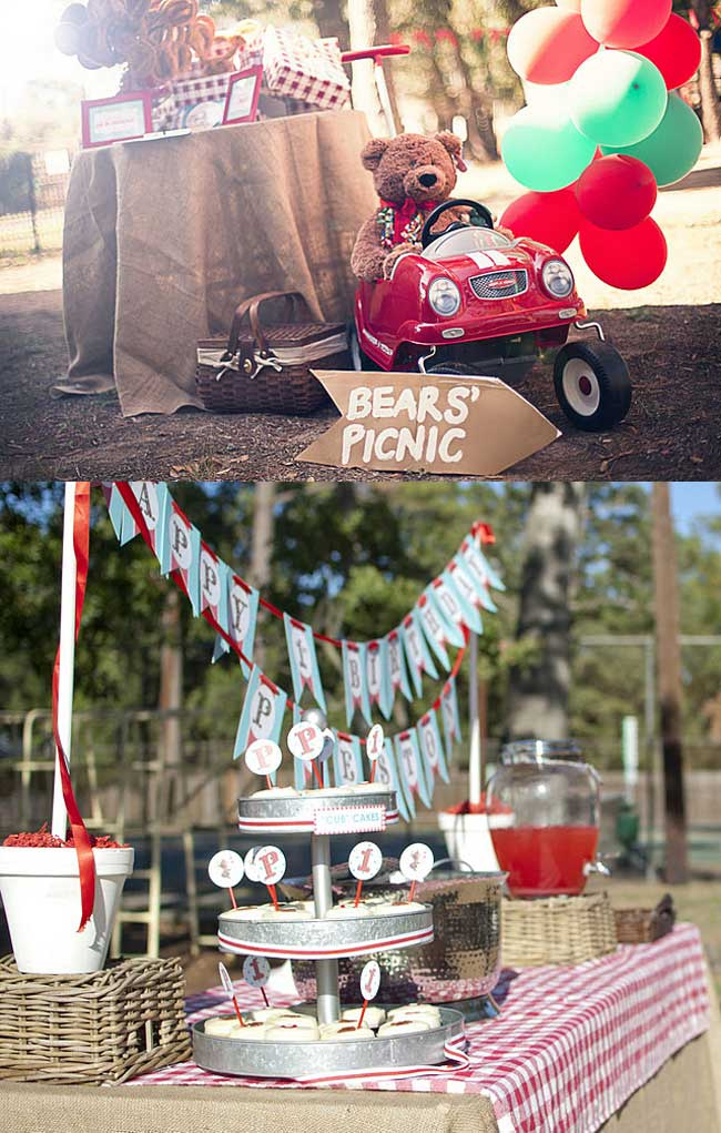 Hola mamis! Una amiga quiere celebrar el cumple de su hijo, me comentaba que buscaba ideas fuera de lo convencional no quería ni tonos pastel, ni súper héroes, ni personajes de dibujos animados, buscaba una fiesta temática pero que fuera muy personal….y pensé en hacerla alrededor del osito que su hijo utiliza toooodas las noches para dormir…su osito Tedy particular… busqué y encontré esta inspiración de un picnic otoñal, aprovechando las temperaturas estivales, dulce pero con colores vivos y alegres ¿ Que os parece la idea? Fuente: The Kummers.